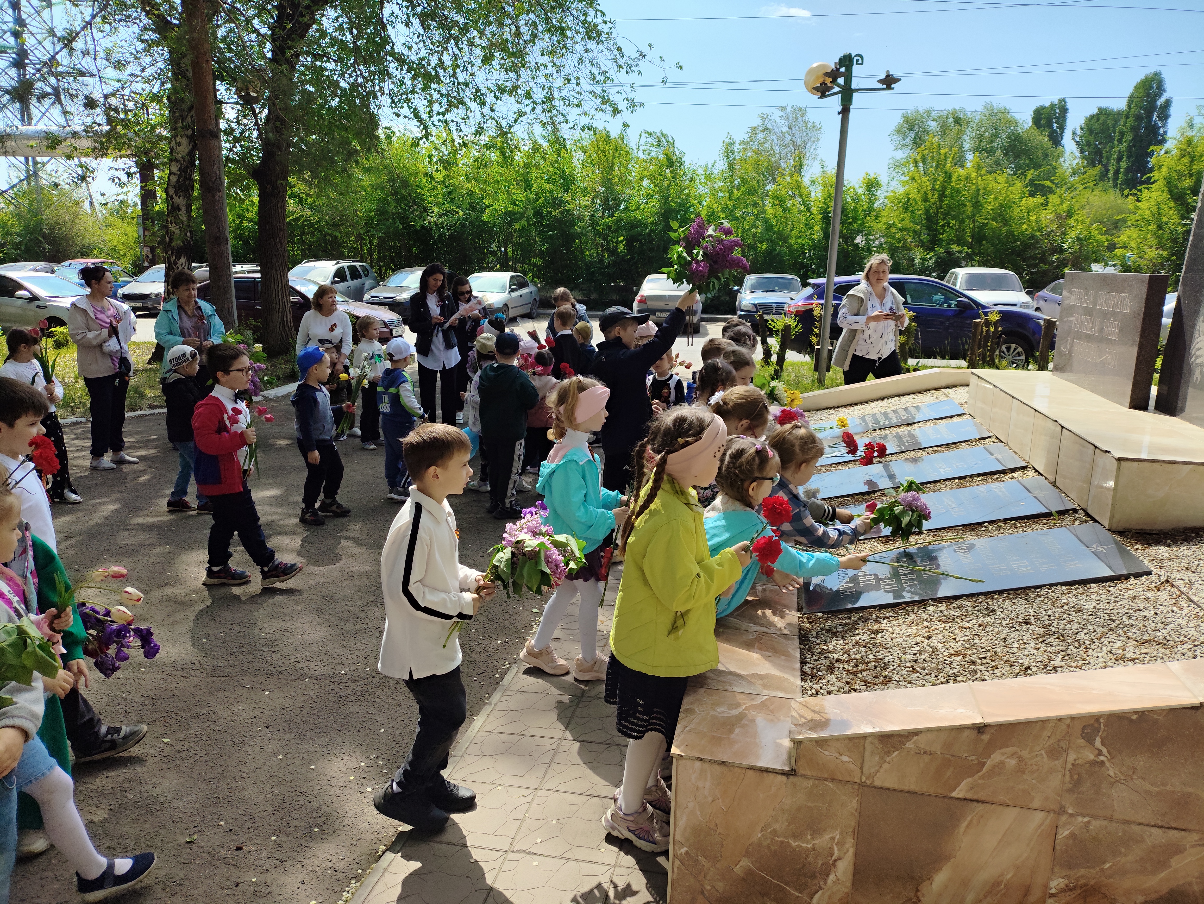 Воспитанники детского сада № 196 вместе со своими воспитателями посетили в предприятии памятник, посвященный ветеранам войны и труженикам тыла, отдав дань уважения всем солдатам, не вернувшимся с войны, всем, кто добывал победу самоотверженным, не менее героическим трудом в глубоком тылу. В торжественной обстановке дети читали стихи, возложили цветы, почтив память участников войны.