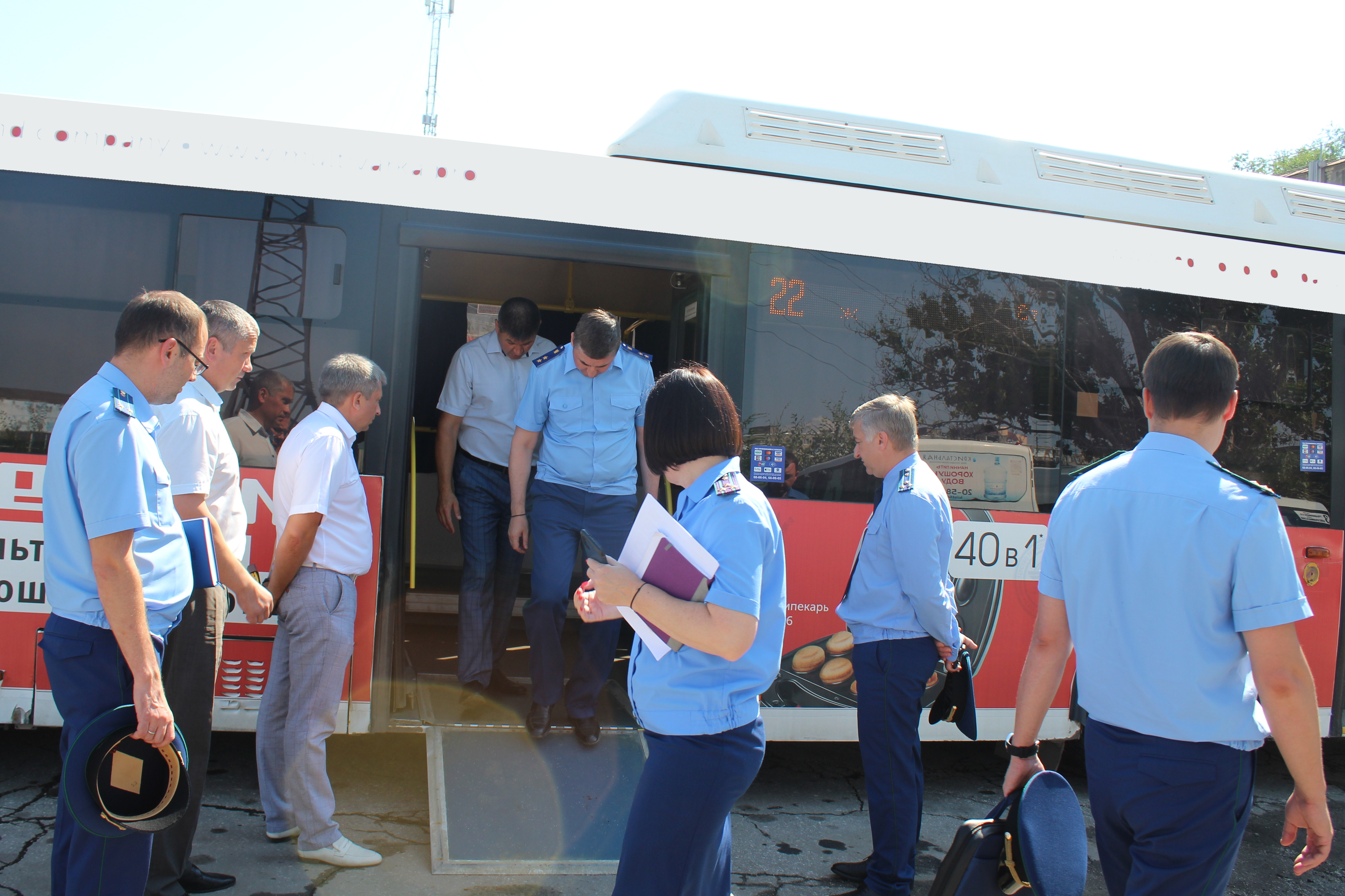 В процессе визита был продемонстрирован один из низкопольных автобусов подвижного состава предприятия с выдвижными пандусами для перевозки пассажиров с ограниченной возможностью передвижения.